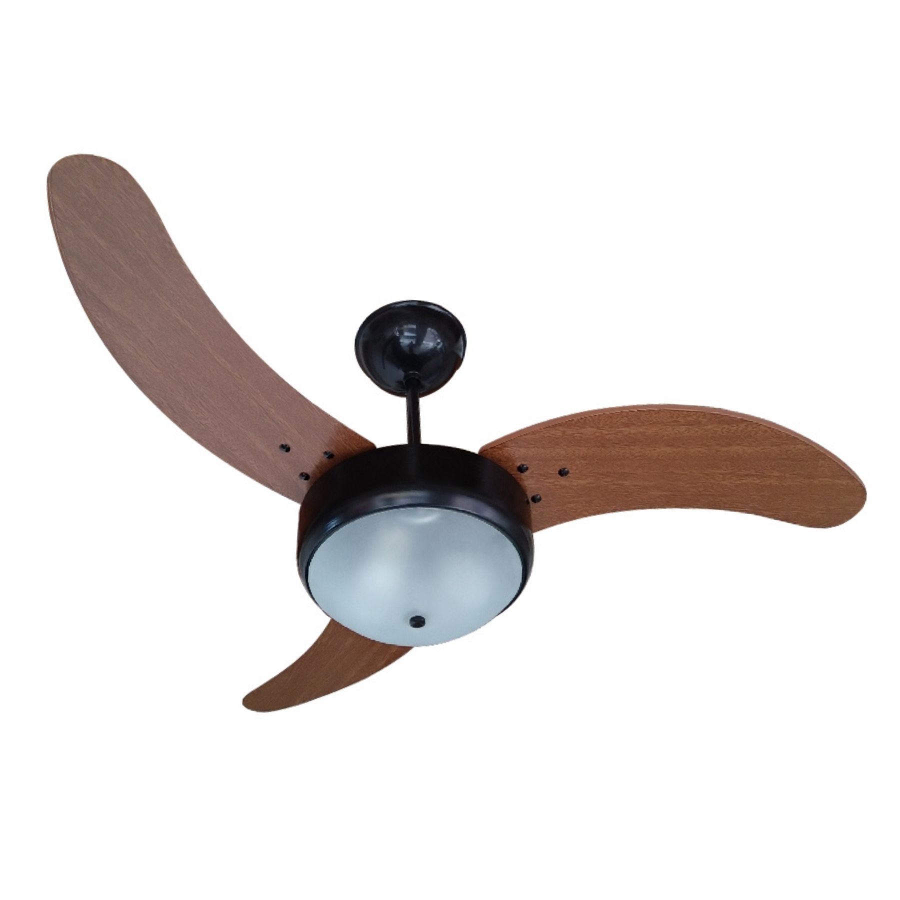 Os ventiladores GIRAVENTO / VENTchêSUL possuem alta performance de ventilação com um design moderno proporcionando qualidade e valorizando o seu ambiente. Modelo Valência: 3 pás curvas em MDF na cor mogno, diâmetro de pás de 1,05m, luminária de vidro fosca para 2 lâmpadas fluorescentes de até 20w espiral ou LED E27 até 9w com tamanho máximo da lâmpada incandescente, podendo ser redonda ou vela, cor do motor e das partes metálicas preta. Potência do motor: 130w. 480 RPM. Motor com eficiência energética A. Área de abrangência: até 20m2. Possui protetor térmico que desliga o aparelho no caso de um super aquecimento sendo mais seguro. Garantia de 01 ano sobre o motor. Acompanha controle remoto Giravento que deixa o ventilador de teto mais silencioso, pois não provoca indução no motor, possui as funções de liga/desliga de lâmpada, liga/desliga de ventilador, 3 velocidades, ventilação e exaustão e Timer para programar para desligar ventilador e luz. Bivolt. Não requer passagem de fiação. Utiliza duas pilhas AAA que não acompanham. Acompanha suporte de parede para fixação com parafusos ou fita dupla face (que não acompanham). Garantia de 1 ano contra defeito de fabricação (a garantia não cobre queima por ligação errada ou curto).